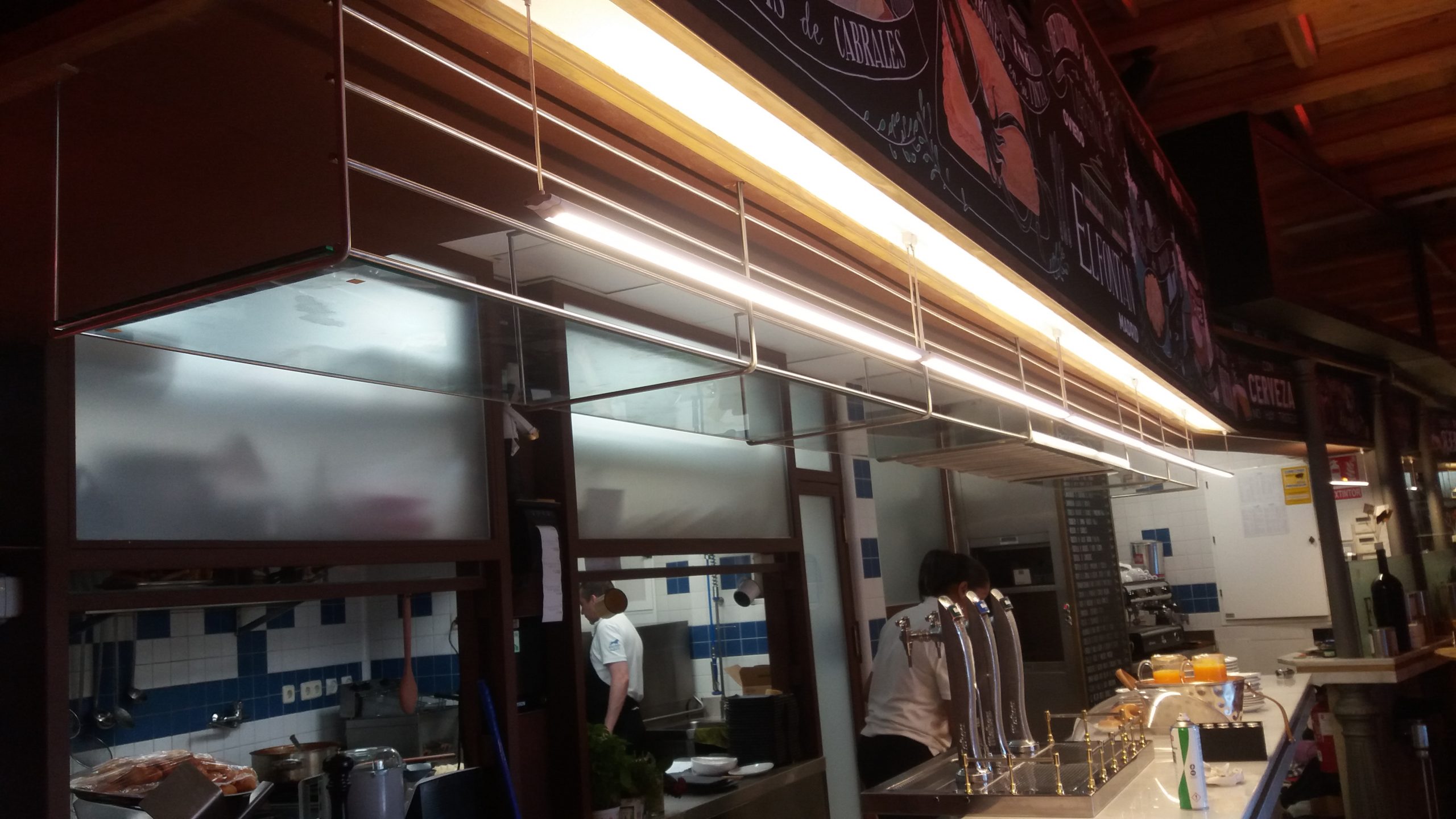 Trabajos de acero inoxidable en combinación con cristal. Fabricación de muebles de diseño y vitrinas para comercios de hostelería.